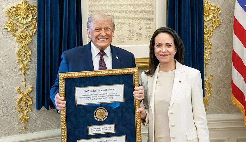 Machado, reconocida internacionalmente por su campaña en favor de la democracia en Venezuela y ganadora del Nobel de la Paz en 2025, entregó la medalla como una señal de gratitud hacia Trump, a quien atribuyó un rol clave en la caída del régimen de Nicolás Maduro, capturado recientemente en una operación de fuerzas especiales estadounidenses.