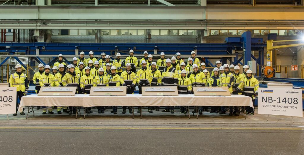 El tradicional corte de acero reunió a directivos y socios de Royal Caribbean y Meyer Turku, dando comienzo a un proceso de varios años que involucrará a miles de especialistas en diseño, ingeniería naval y arquitectura para dar forma a uno de los proyectos más ambiciosos de la compañía.